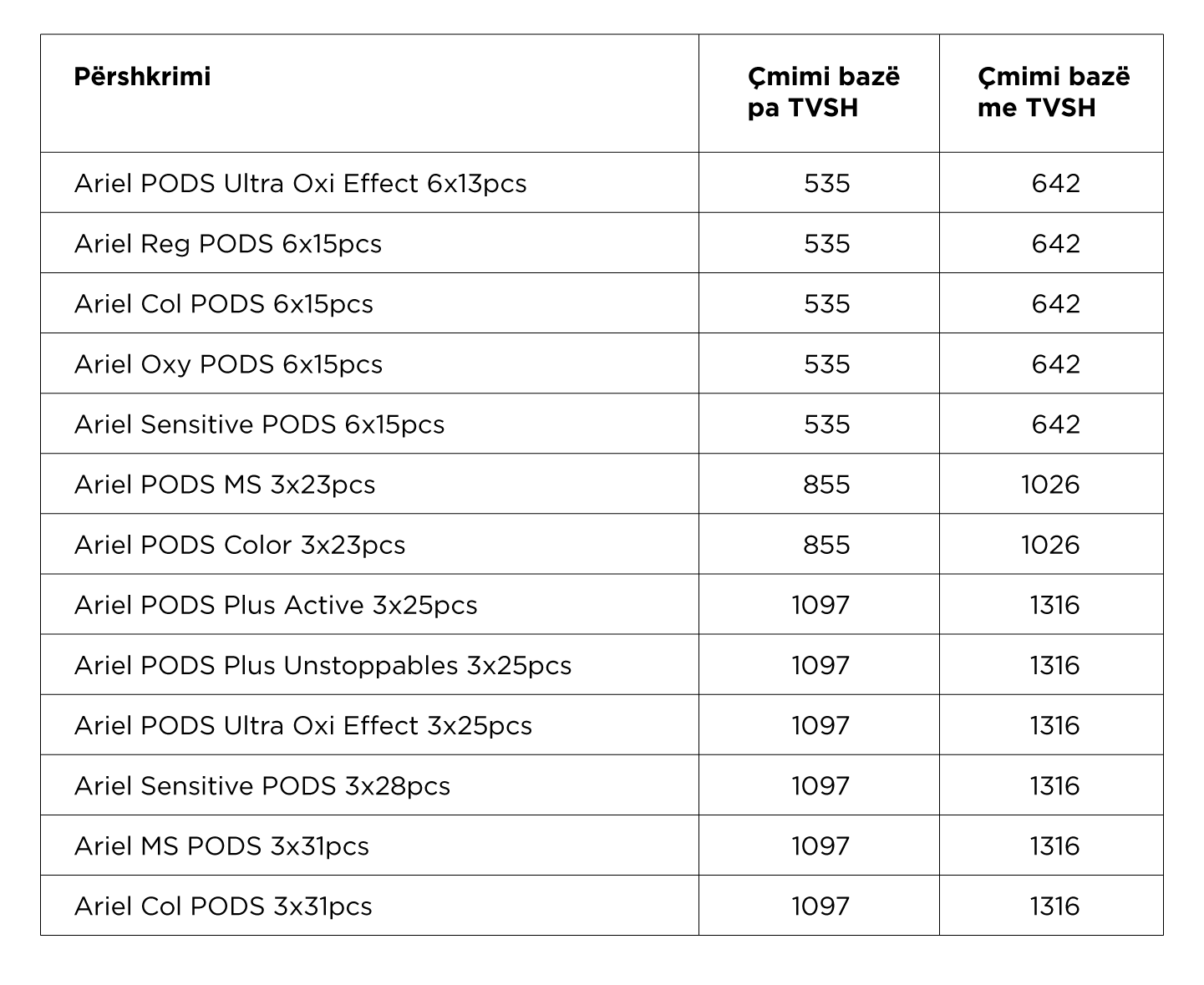 Kushtet për pjesëmarrje në llotari: Të gjithë konsumatorët e interesuar që bëjnë një blerje të detergjentit Ariel PODS (sipas tabelës nr.2, brendi P&G-Ariel) me vlerë 450 Lekë me TVSH (375 Lekë pa TVSH) gjatë periudhës 1 shtator 2021 ora 00:01 deri më 30 nentor 2021 ora 23:59, dhe regjistrojnë kuponin tatimor në faqen zyrtare të internetit të organizatorit www.unezgjedh.al bëhen pjesë për të fituar 1 nga 15 lavatriçet Bosch. Çdo kupon i regjistruar bëhet pjesë në përzgjedhjen për të fituar 1 nga 15 “Lavatriçet Bosch”.